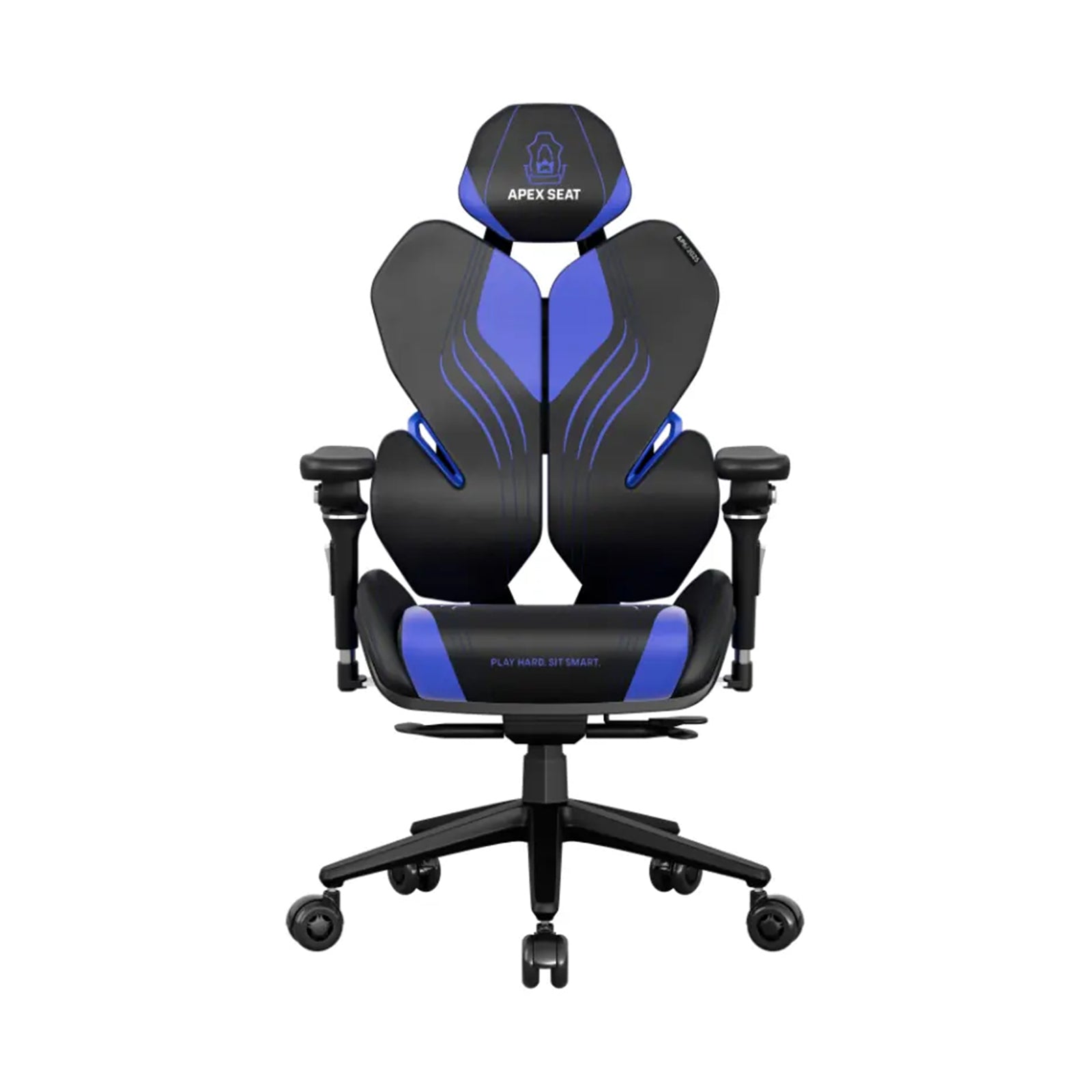 APEX SEAT EisenHart Gaming Chair With 5D Chrome Armrests, Weight-Activated Recline, Customizable Multi-Tilt & Height , PU Casters, Matte Aluminum Base, Cashmere Leather Finish , 180KG Wright Capacity | Black with Indigo Accents
