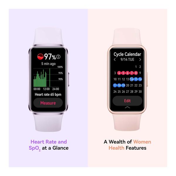 - AI-powered Fitness Monitoring: Powered by an advanced 9-axis sensor and AI-enhanced stroke identification technology, HUAWEI Band 10 provides a wealth of data for 100 sports modes, including ultra-accurate swimming data